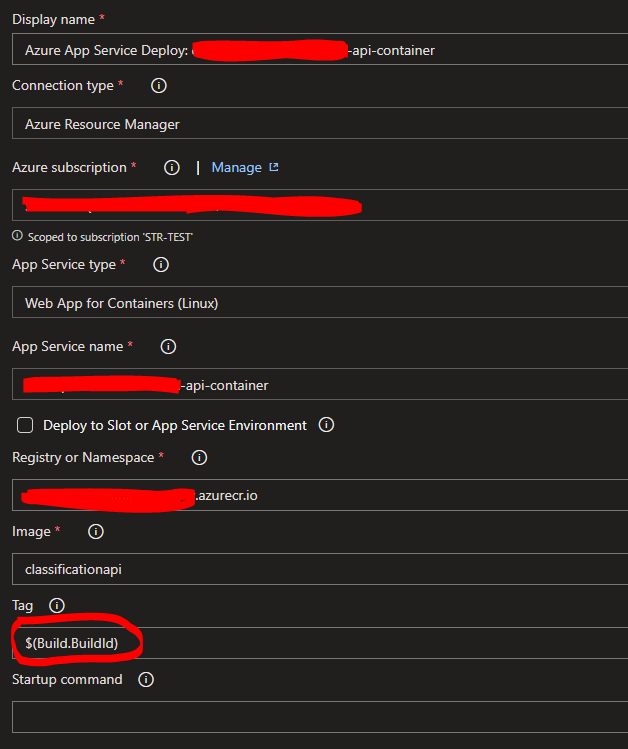 但是,我可以通过使用我在本地计算机上部署的标记来验证Azure App Service deploy任务是否正常工作,使用我知道的使用Visual而不是$(Build.BuildId)部署的标记。