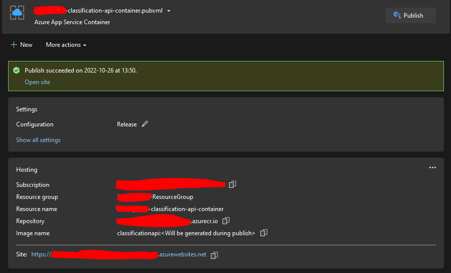 使用Windows 10上的Visual 2022将容器映像发布到Azure容器注册表,然后将其链接到Azure App没有问题。