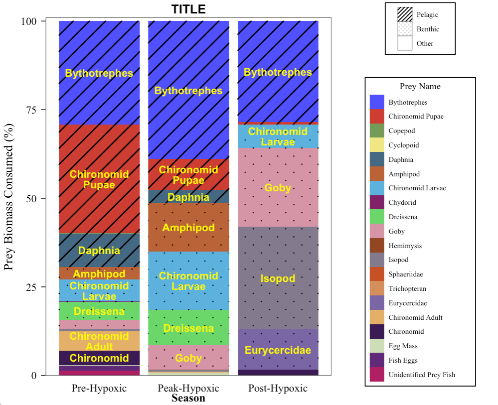 structure(list(Season = structure(c(1L, 1L, 1L, 1L, 1L, 1L, 1L, 1L, 1L, 1L, 1L, 1L, 1L, 1L, 1L, 1L, 1L, 1L, 2L, 2L, 2L, 2L, 2L, 2L, 2L, 2L, 2L, 2L, 2L, 3L, 3L, 3L, 3L, 3L, 3L, 3L), levels = c("Pre-Hypoxic", "Peak-Hypoxic", "Post-Hypoxic"), class = "factor"), PreyName = structure(c(1L, 2L, 3L, 4L, 5L, 6L, 7L, 8L, 9L, 10L, 12L, 13L, 14L, 16L, 17L, 18L, 19L, 20L, 1L, 2L, 5L, 6L, 7L, 9L, 10L, 11L, 12L, 16L, 18L, 1L, 2L, 7L, 10L, 12L, 15L, 17L), levels = c("Bythotrephes", "Chironomid Pupae", "Copepod", "Cyclopoid", "Daphnia", "Amphipod", "Chironomid Larvae", "Chydorid", "Dreissena", "Goby", "Hemimysis", "Isopod", "Sphaeriidae", "Trichopteran", "Eurycercidae", "Chironomid Adult", "Chironomid", "Egg Mass", "Fish Eggs", "Unidentified Prey Fish"), class = "factor"),