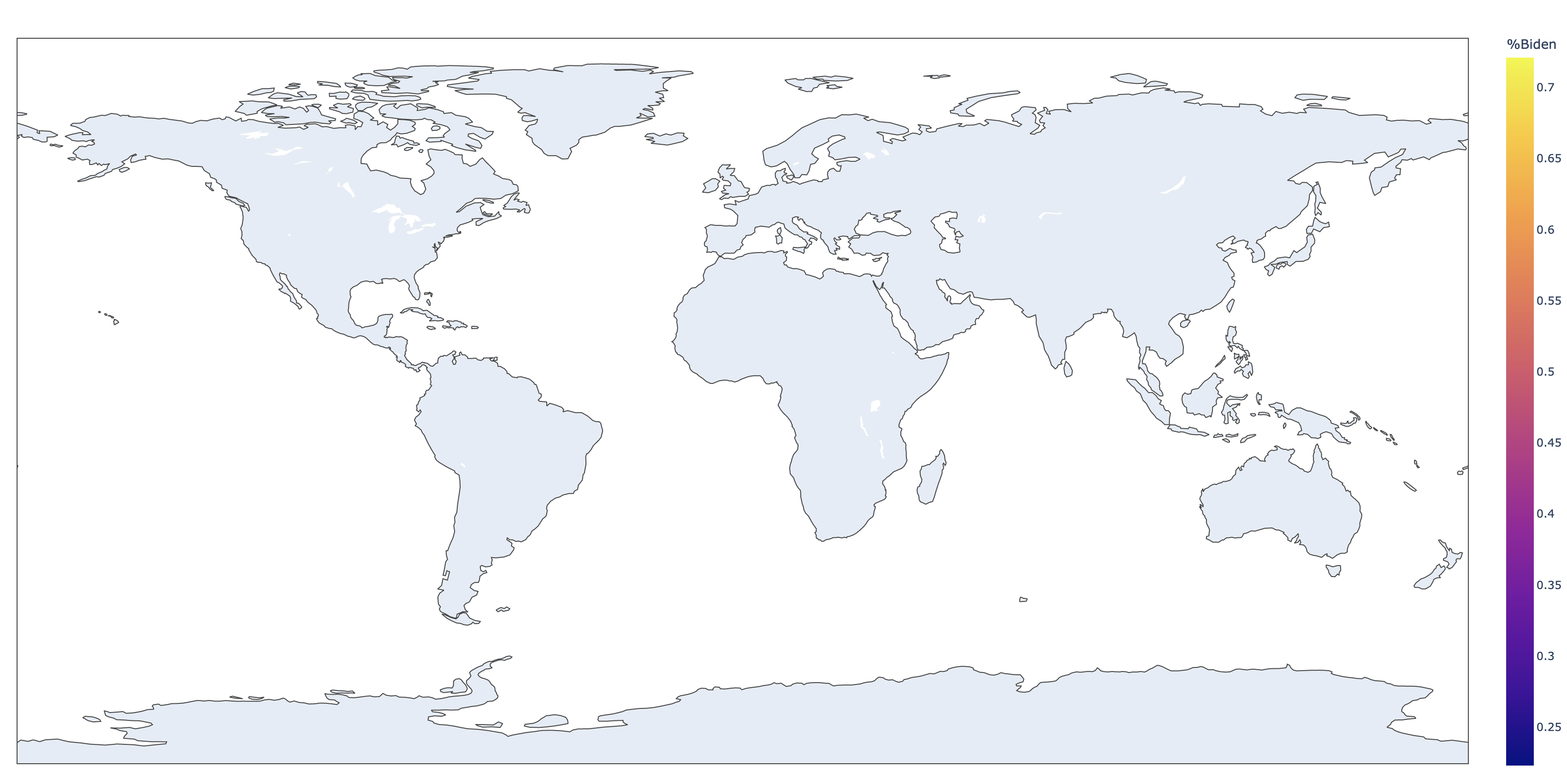 问题:我目前正在使用一个密歇根州县的GeoJSON文件,并试图绘制一个州地图,显示选择约翰的人的百分比。但作为回报,我只得到了一张空空的无色美国地图,上面有一个传说。就像这样: