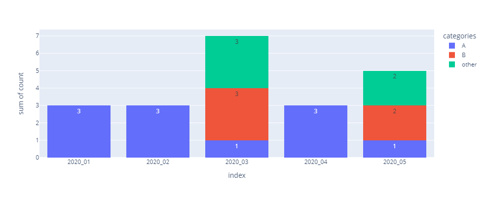 data={'A': {'2020_01': 3, '2020_02': 3, '2020_03': 1, '2020_04': 3, '2020_05': 1},