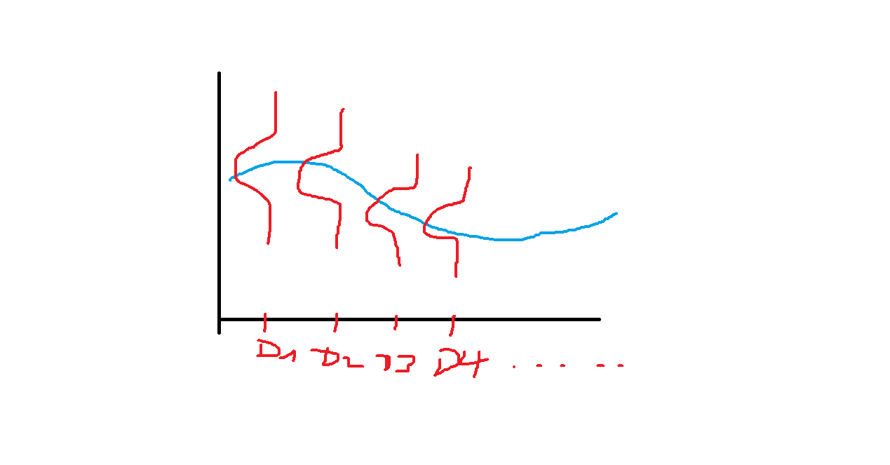 我无法理解的是,如何将观测值的分布添加为每个时间步骤的垂直直方图。因为这可能有点难以描述,所以我绘制了一张期望输出的支持级别的油漆图: