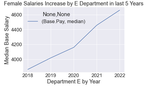 x_select.plot(title='Female Salaries Increase by E Department in last 5 Years')