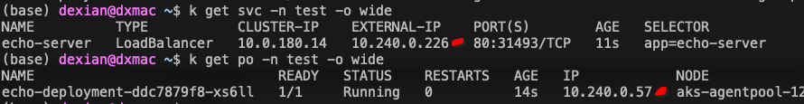 我用下面的yaml部署了一个回显服务器,我可以从VM直接使用vnet来压缩pod。但是当用负载均衡器尝试时,什么都没有返回。真的不知道我错过了什么。任何帮助都是非常感谢的。