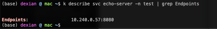 k describe svc echo-server -n test | grep Endpoints