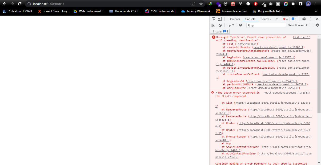 当我手动转到localhost:3000/hotels路由时,它会给出以下错误。我知道错误是由于得不到价值而来的,那么如何解决它呢?如果您能通过查看github代码来提供帮助,那就太好了。