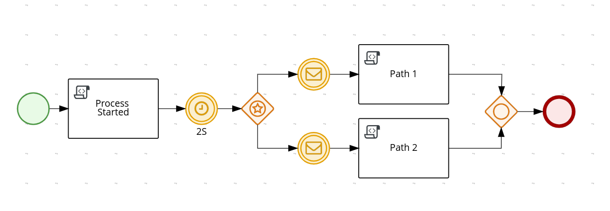 Kogito有一个类似的例子,但在他们的示例中,process one首先抛出一条触发进程2的消息,然后与两个进程建立通信。参见这里的示例:Kogito旅行社