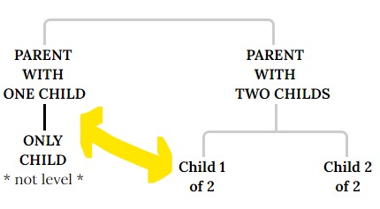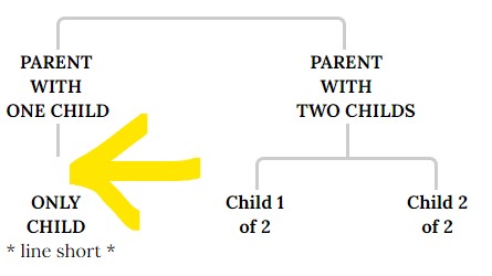 见图--在此树中,“独生子女”与其他儿童不水平对齐: