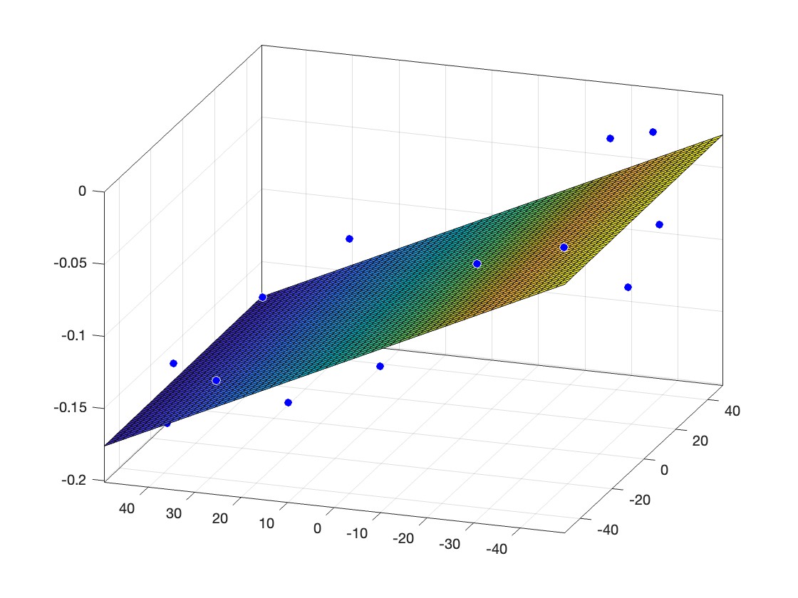 在拟合数据的线性曲面上,是否有任何直接的方法来导出法向量。曲面是由fit函数在我的X、Y、Z数据点上创建的: