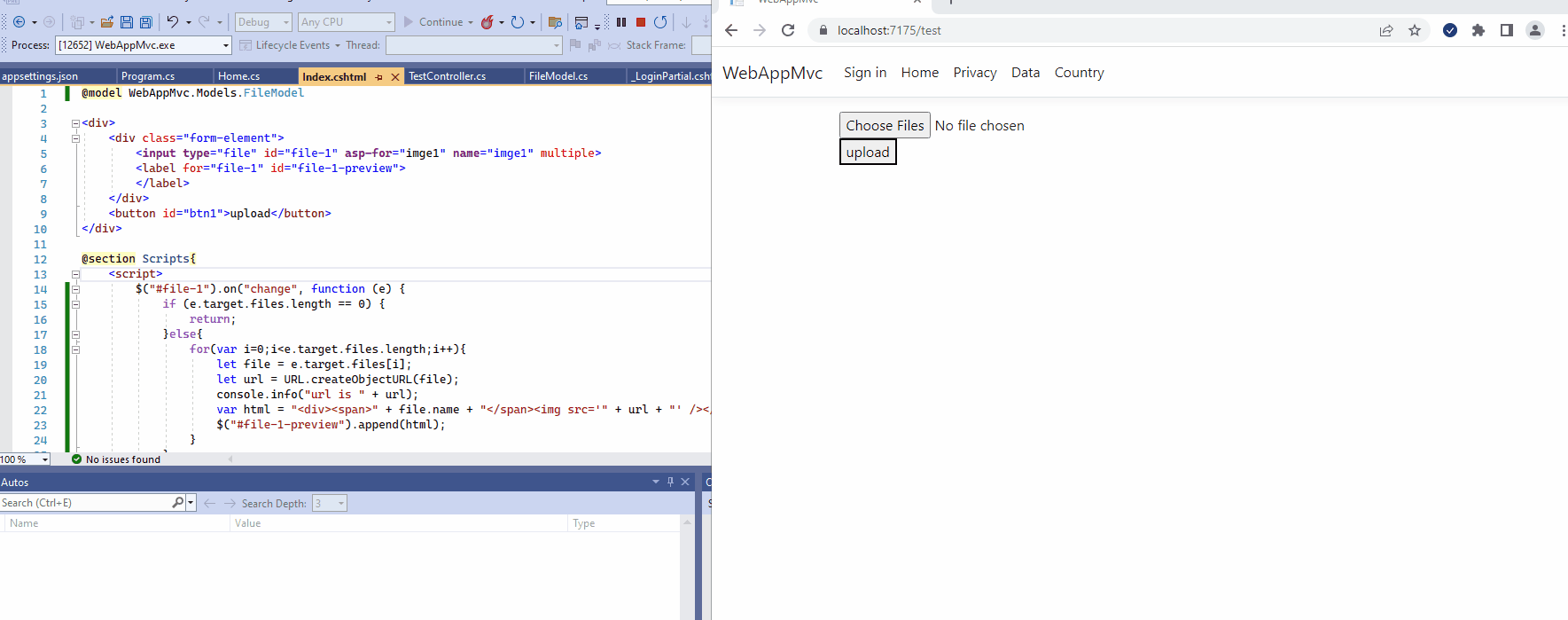 我创建了一个表单,在这个表单中,我通过各自的button.But将图像上传到他们的个人属性中,我想通过单个button.Also在其个人属性中添加图像,在upload.It处于upload.It核心mvc之前显示图像预览,我还在上传之前使用一些jquery对图像进行预览。我的控制器代码: