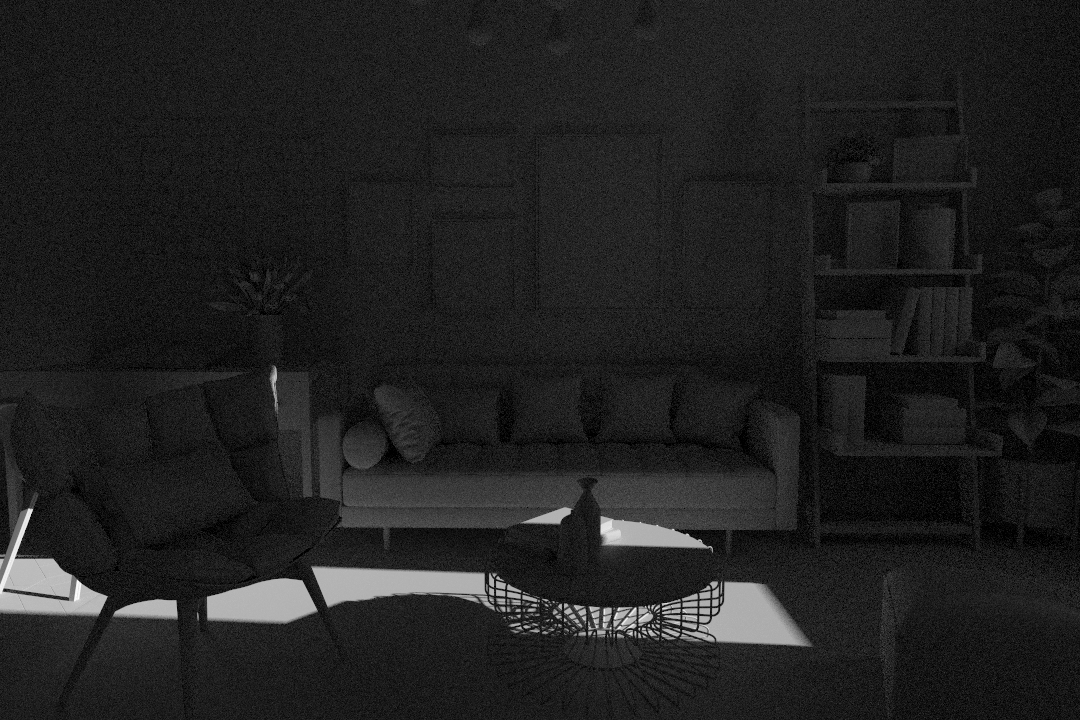 这是一个室内房间,灯光来自两个窗户。只有一个方向光。反弹的次数设置为8。