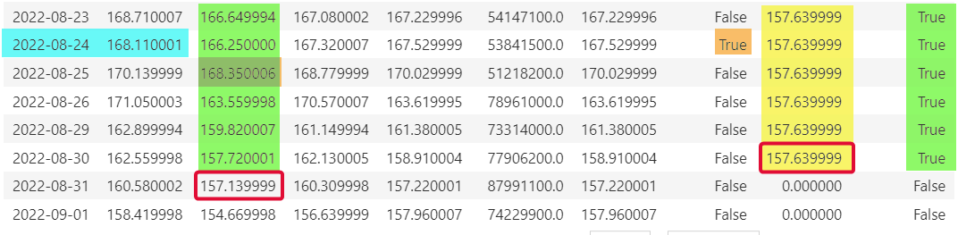 2022-08-31 160.580002 157.139999 ... False 2预期产出(对任何更好的代表性开放):