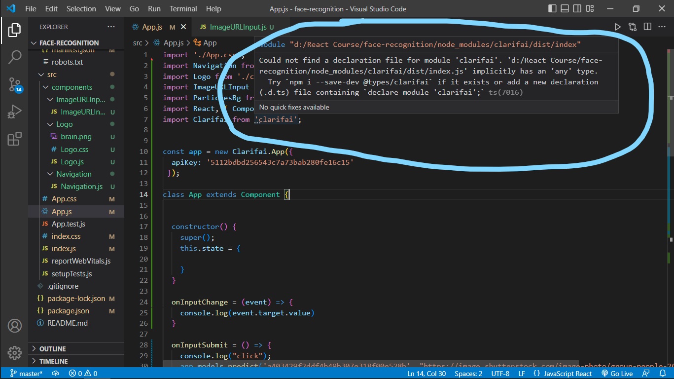 找不到模块“clarifai”的声明文件
