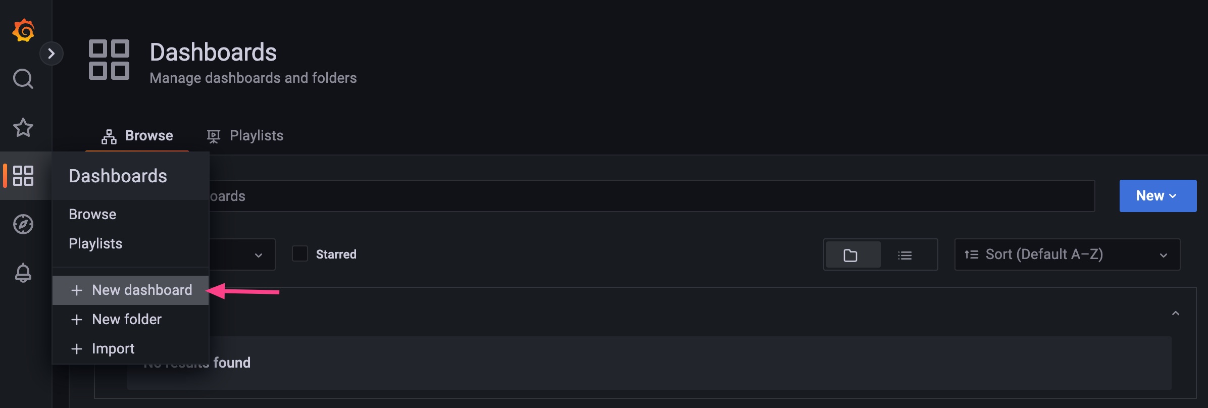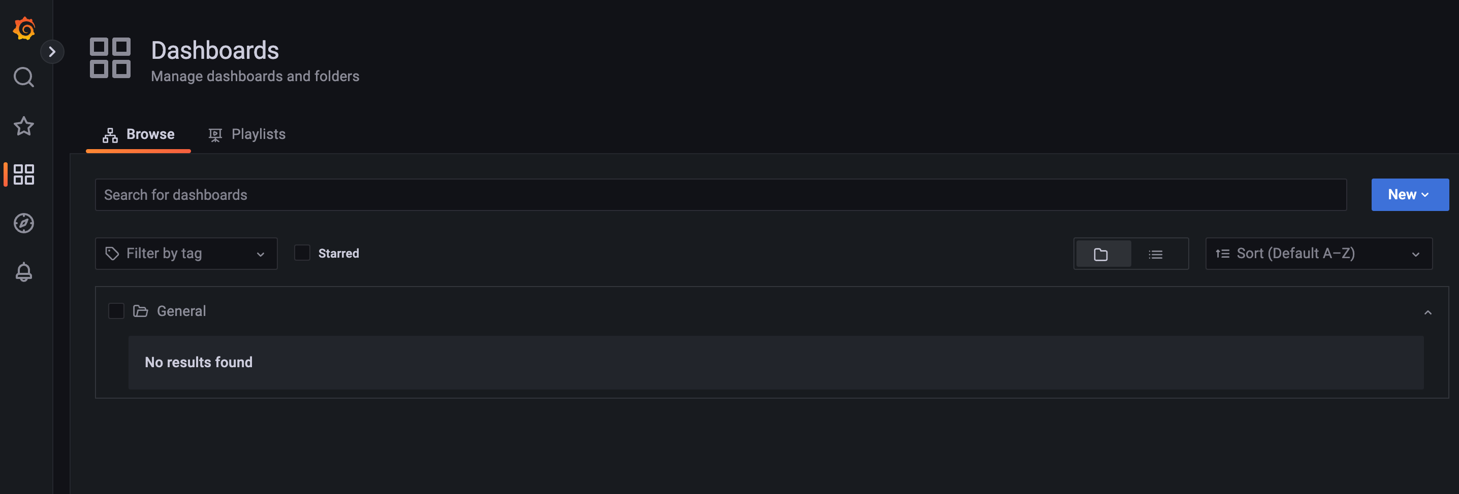 hongbomiao-mypanelplugin-panel | logger=live.features t=2022-11-02T21:40:50.528954711Z level=error msg="Error getting dashboard" query="{Slug: Id:0 Uid:u7hG9eN4z OrgId:1 Result:<nil>}" error="Dashboard not found"http://localhost:3000/dashboards的Grafana仪表板是空的: