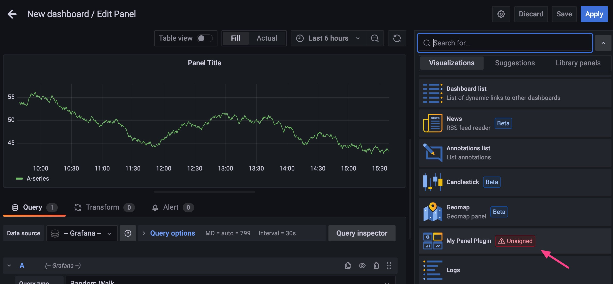 如何在仪表板中正确显示自定义Grafana插件?