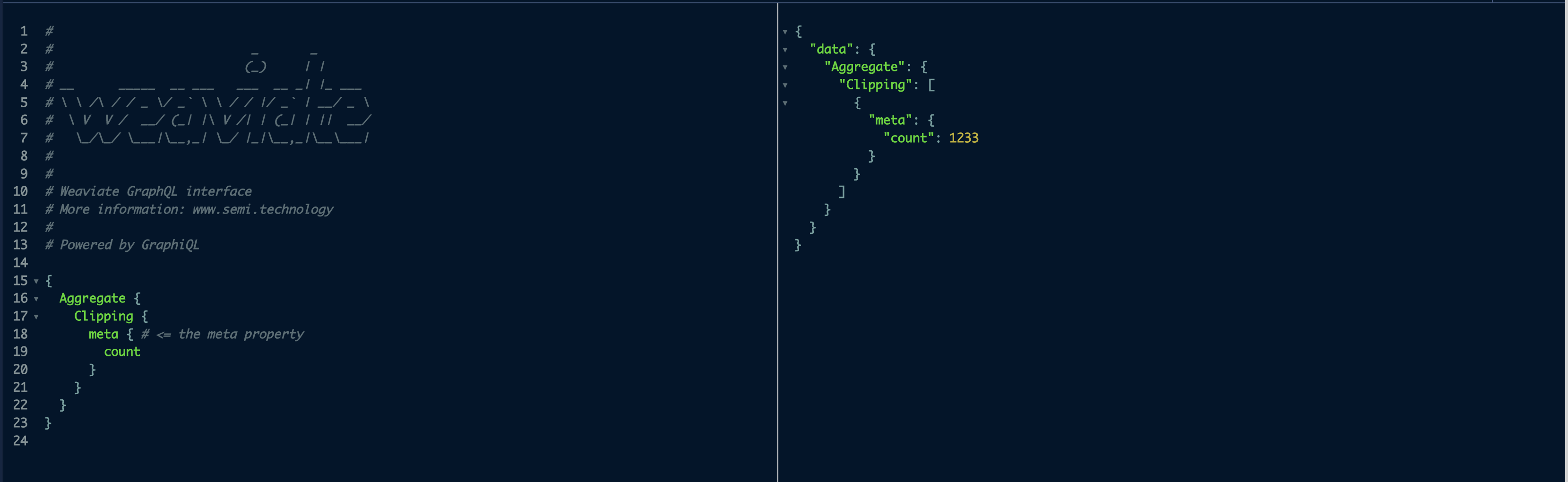 }但是,一些对象已成功上传。当我在Weaviate控制台中运行元计数查询时,我发现了1233个对象(见图)