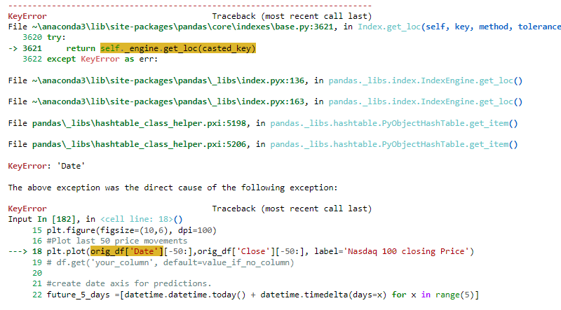 因此,我假设变量“”只是对pd.read_csv('ndx.csv')的调用,因为屏幕截图就是这样的。