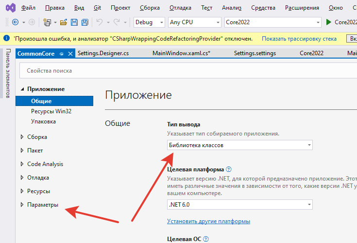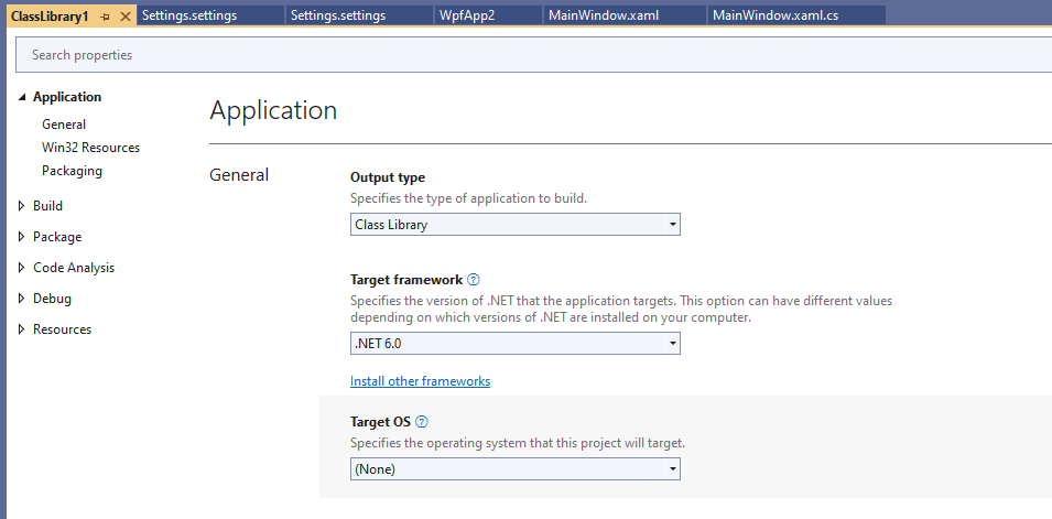 至于类库项目中的参数,它可能取决于这个库的类型。我在WPF的类库中有这样的设置。