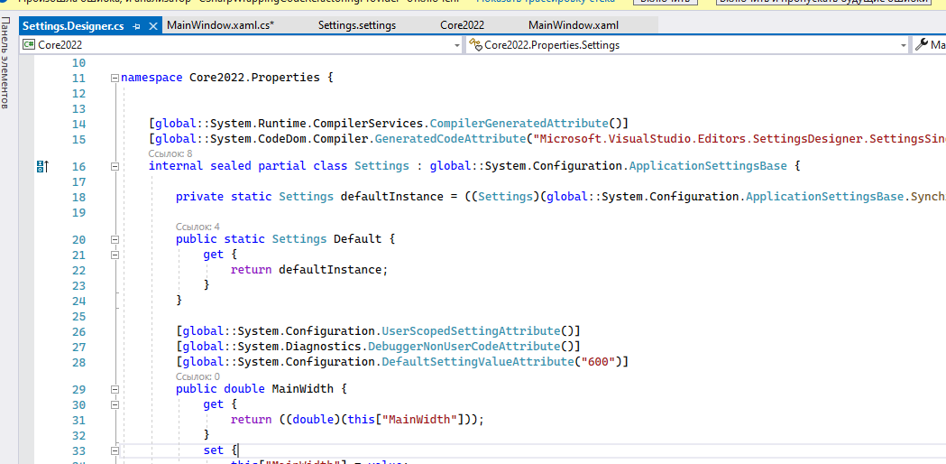 您将被带到Settings类声明的源代码中。此代码由代码生成器生成。
