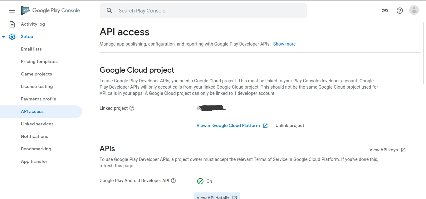 现在,我想将所有这些Google项目链接到Play控制台中的API访问,但是没有选择向其添加多个项目。