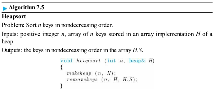 def HeapSort(n, H):