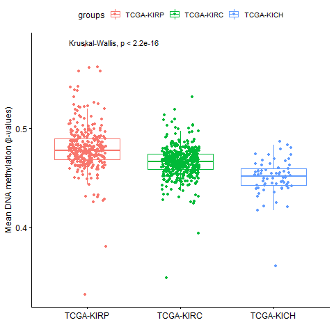 我想绘制基于subtype列的Mann检验(Wilcoxon秩和检验),该列包含normal、KIRP、KIRC、KICH数据。