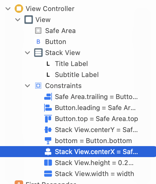 您可以给按钮或堆栈视图一个更有用的名称,然后它将显示在文档大纲中的约束引用中。