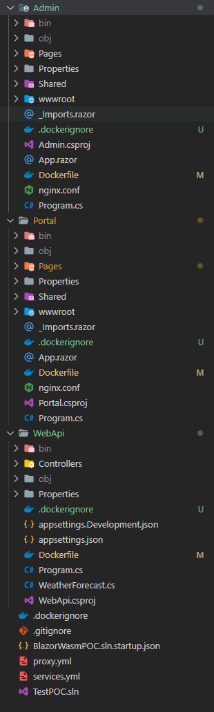 我在每个文件夹中都有dockerfile (管理、门户、webpai)。以及只在根(proxy.yml,services.yml)中构建文件,我应该把.dockerignore文件放在哪里?在每个文件夹里?还是只有根文件夹?