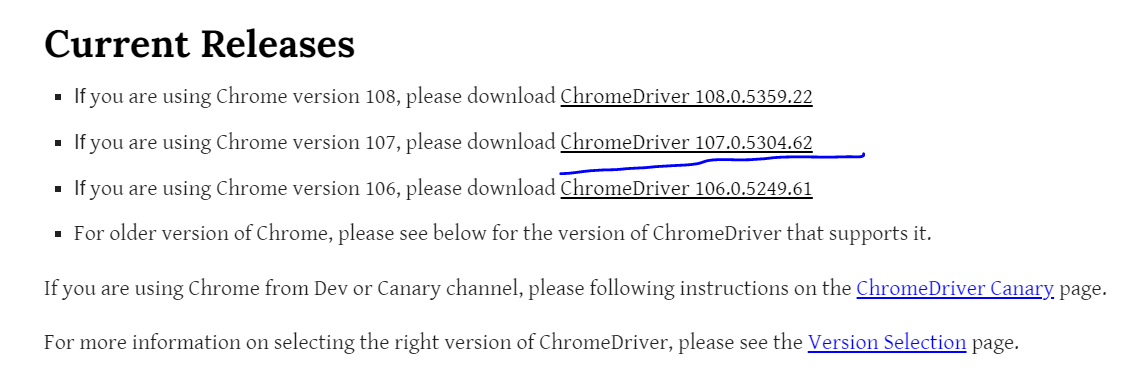 Google Chrome 107.0.5304.87我正在使用这个版本的chromedriver (次要版本不匹配,但它们不应该匹配,这在Windows上没有任何问题--当前的次要版本afaik没有Chromedriver )
