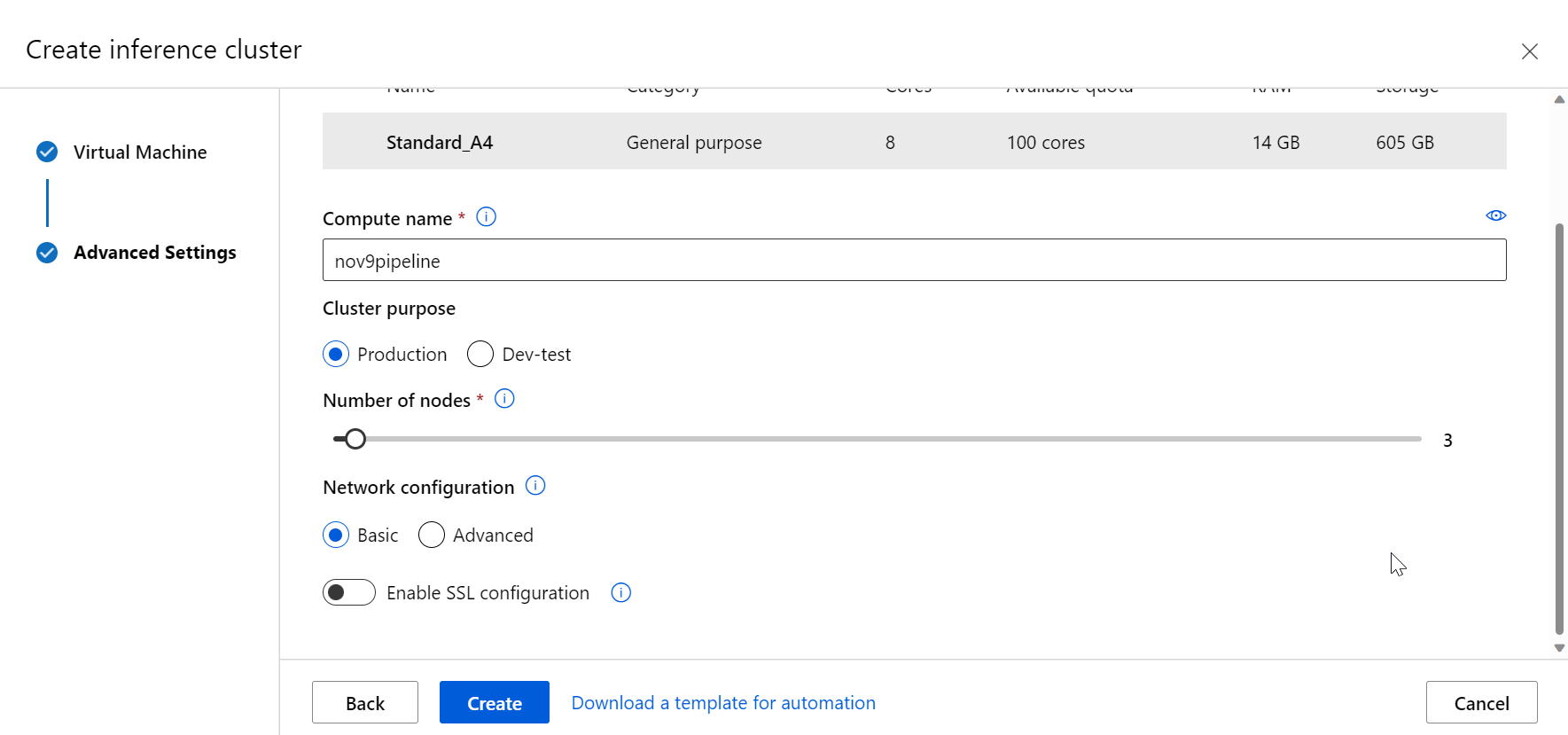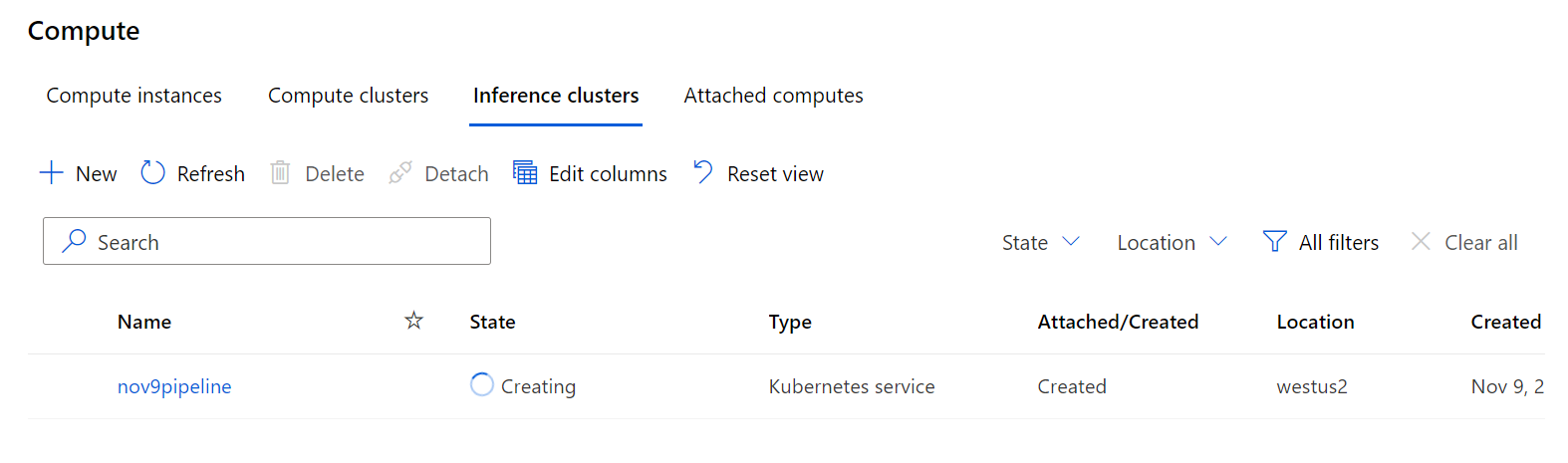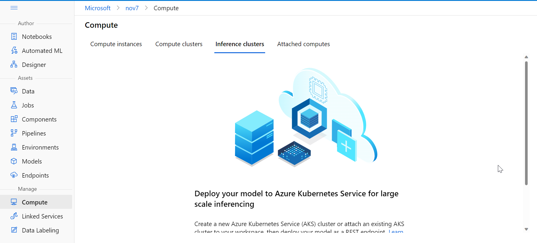 要进行部署,我们需要一个推理集群。默认情况下它将是AKS。