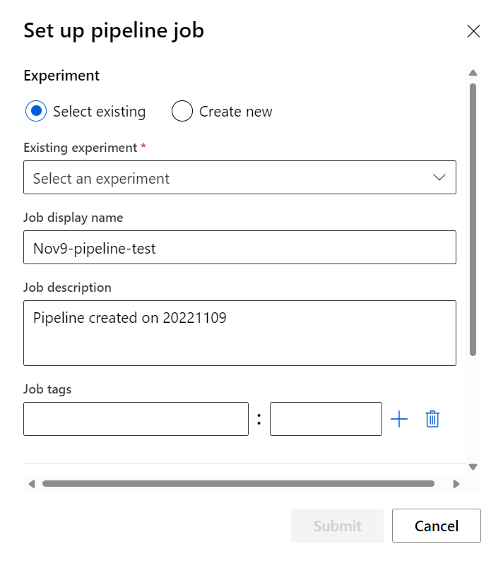 创建新的管道作业
