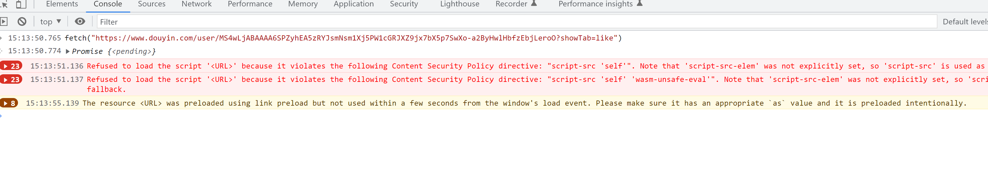 然后,我试图在扩展页面的Chrome控制台中获取URL,也得到了一个CSP错误。那么,为什么要将文本解析到网页中,然后在其中加载脚本呢?