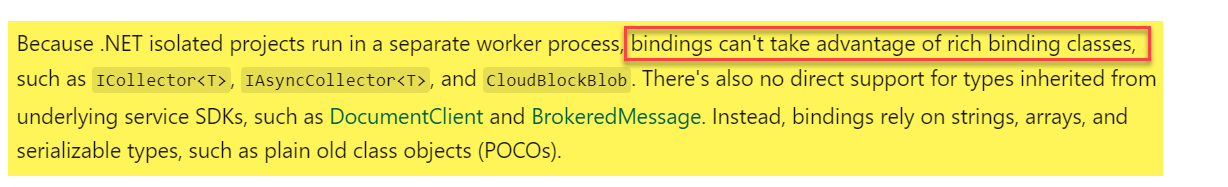 下面的Microsoft文档解释了为什么我不能在隔离模式之前实现我能够做的事情。隔离模式没有利用这些丰富的绑定类。