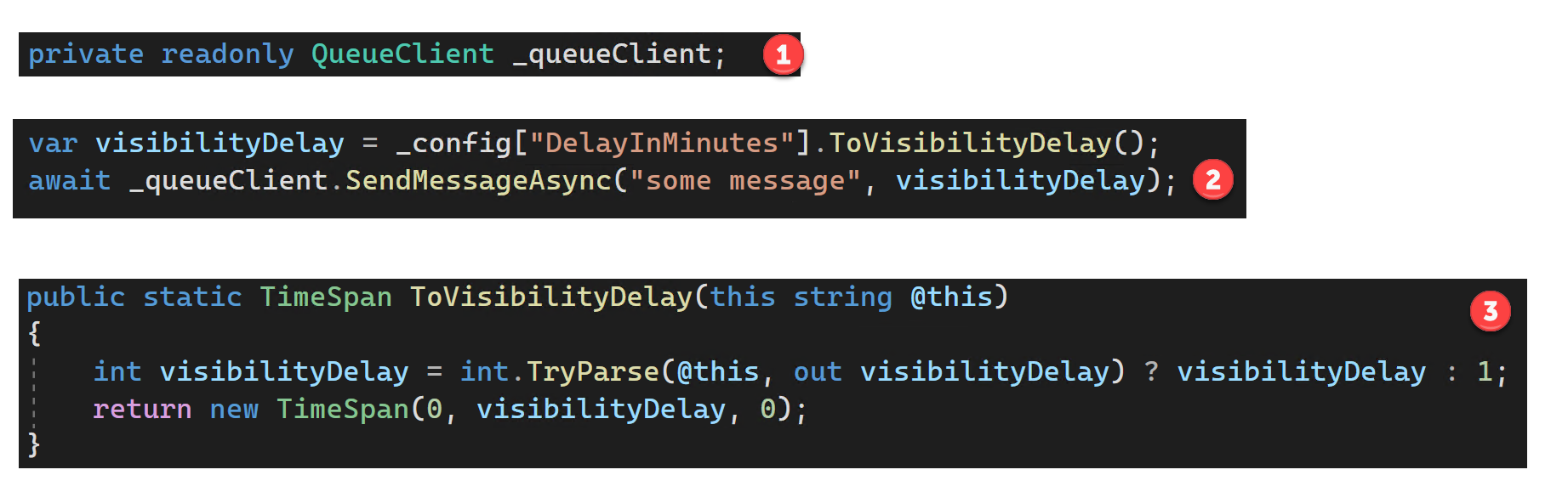 outputQueue.AddMessage(cloudQueueMessage, initialVisibilityDelay: timespan);既然我们已经将这些Azure函数迁移到隔离的模式,那么如何在消息中添加可见性延迟呢?