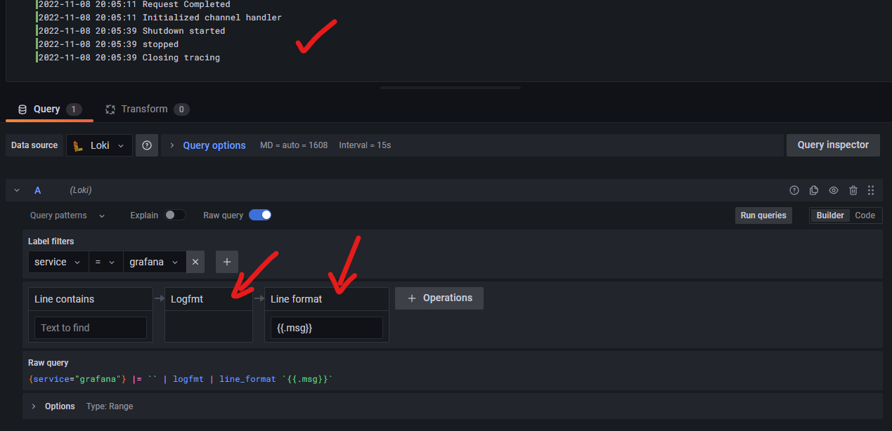 工作非常好,但我想删除时间戳从日志行,一旦它已经提取了Promtail。原因是我的日志面板一半的屏幕被时间戳占据。如果我想在面板中显示时间戳,我可以这样做,所以我真的不需要它在日志行。