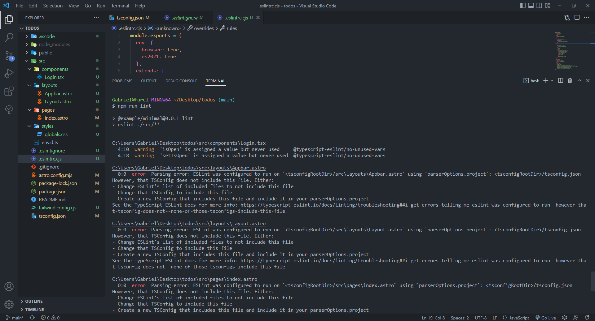我试图用react、typescript和astro来设置我的eslint配置,但似乎我无法摆脱这个错误: