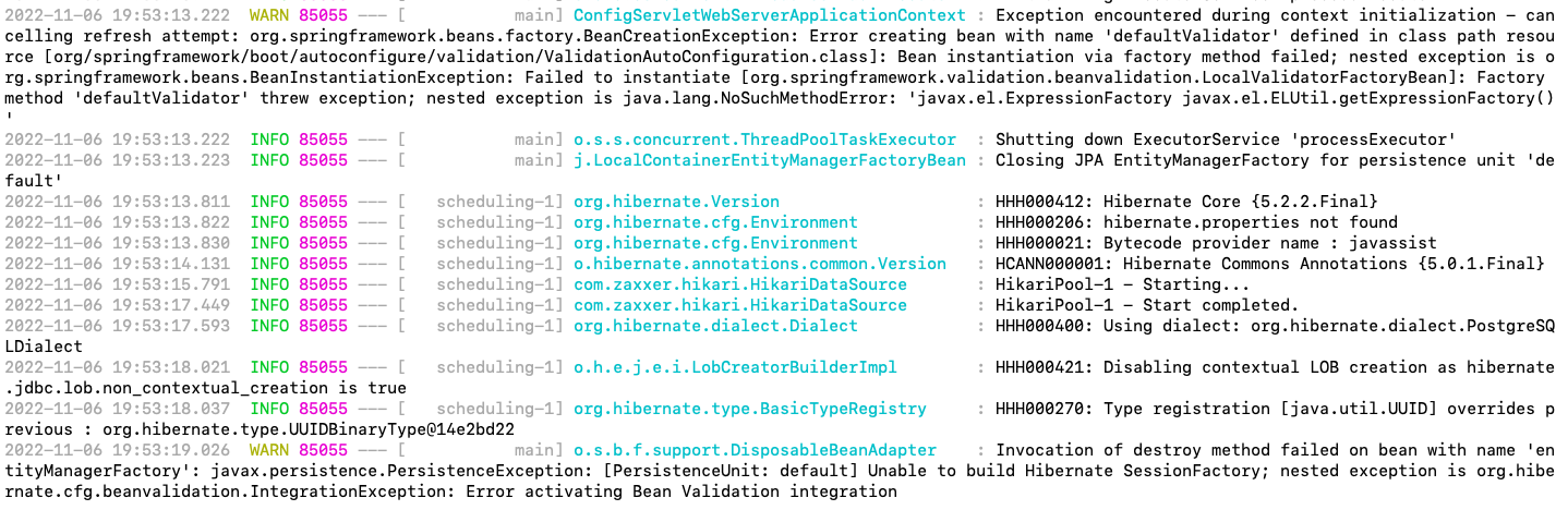 尝试与mvn清洁安装,并在这里列出的建议- 创建类路径资源中定义的名为“defaultValidator”的bean时出错。
