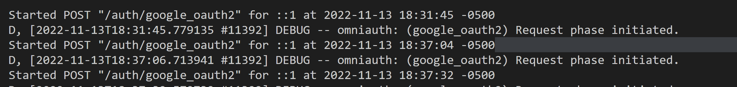 我正在使用Google : OAuth2中的https://github.com/zquestz/omniauth-google-oauth2,但是在将POST请求发送到Google之后,什么也没有发生。