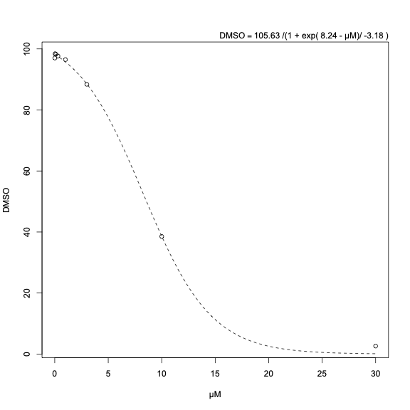 dat <- data.frame(μM, DMSO)