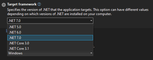 但是当我进入"Web应用程序“目标框架时,它不是一个选项:-