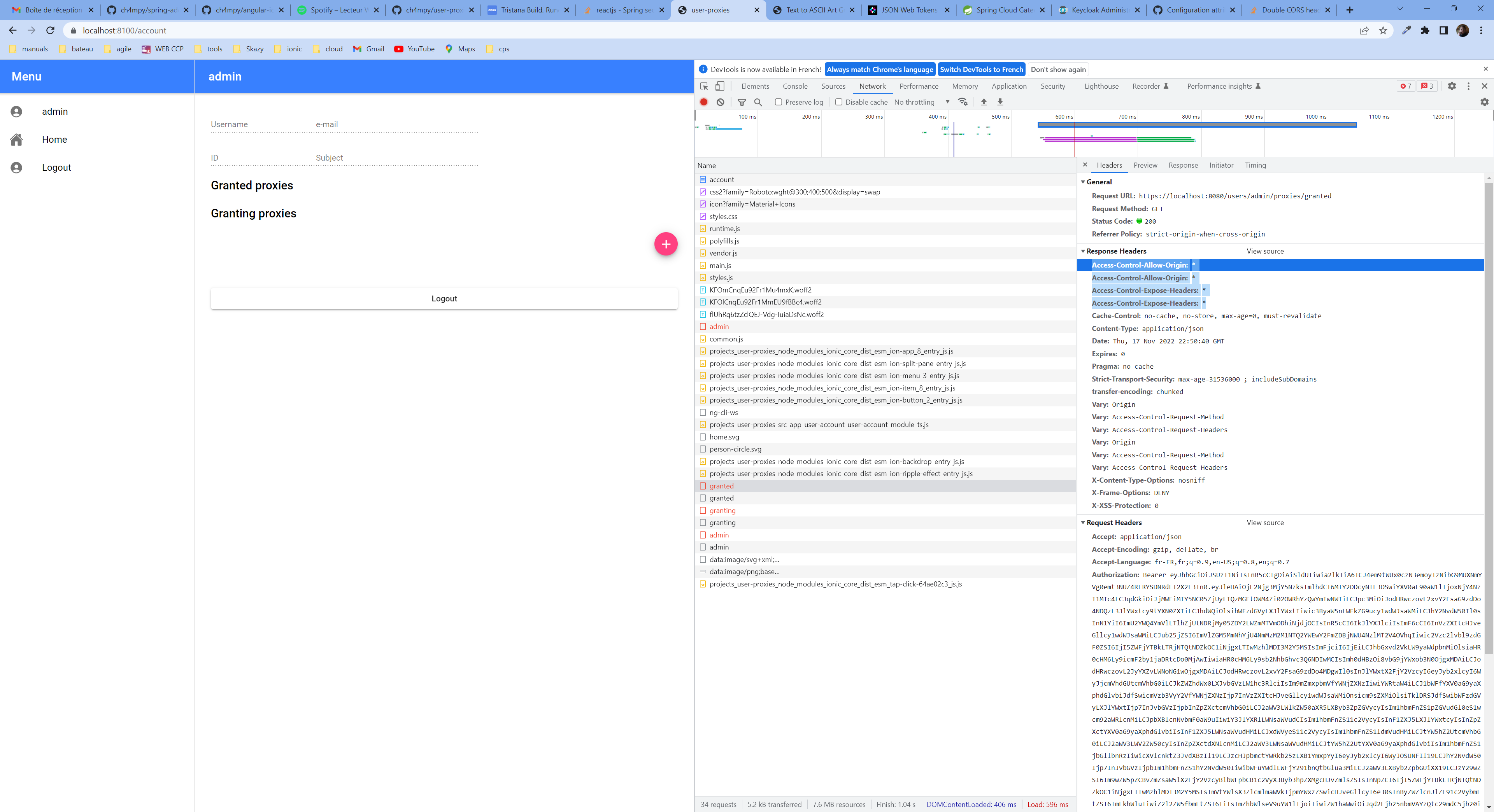 如果我在资源服务器(端口9443和9445)中禁用CORS,那么CORS报头不再加倍,通过网关的请求是成功的(但是直接请求失败)。