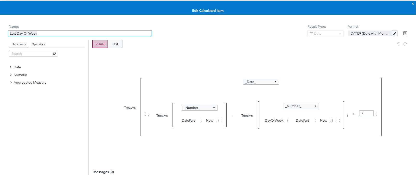 然后,使用数字(高级)下的TreatAs将其转换为一个数字,您可以将其用于数学。最后你会有前三个街区..。基本上,在英语中,一天减去一周和一天,再加上7减去一周(或者根据你认为开始/结束的时间来调整这一点)。
