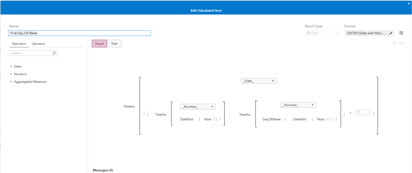 如何在SAS视觉分析中获得今天周的开始日期和结束日期?Intnx函数在SAS企业指南中不可用。
