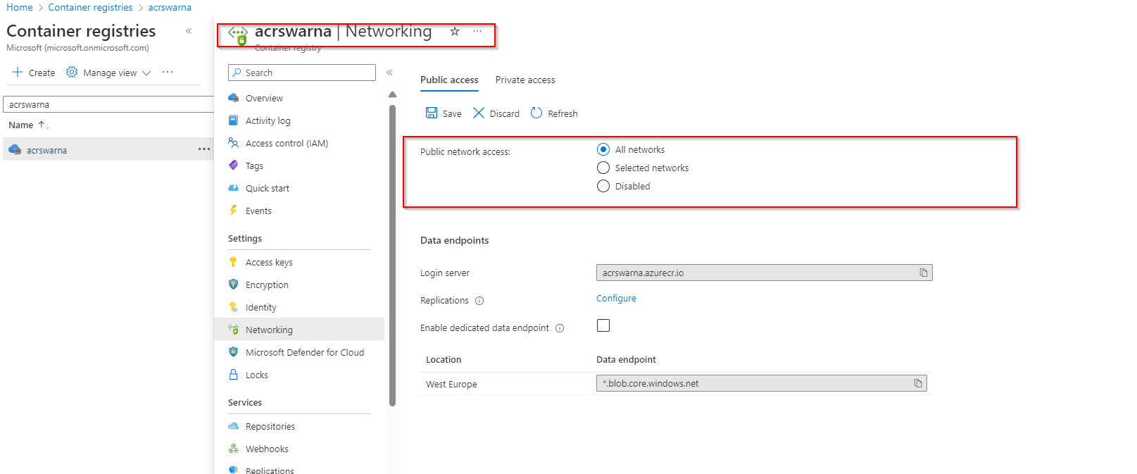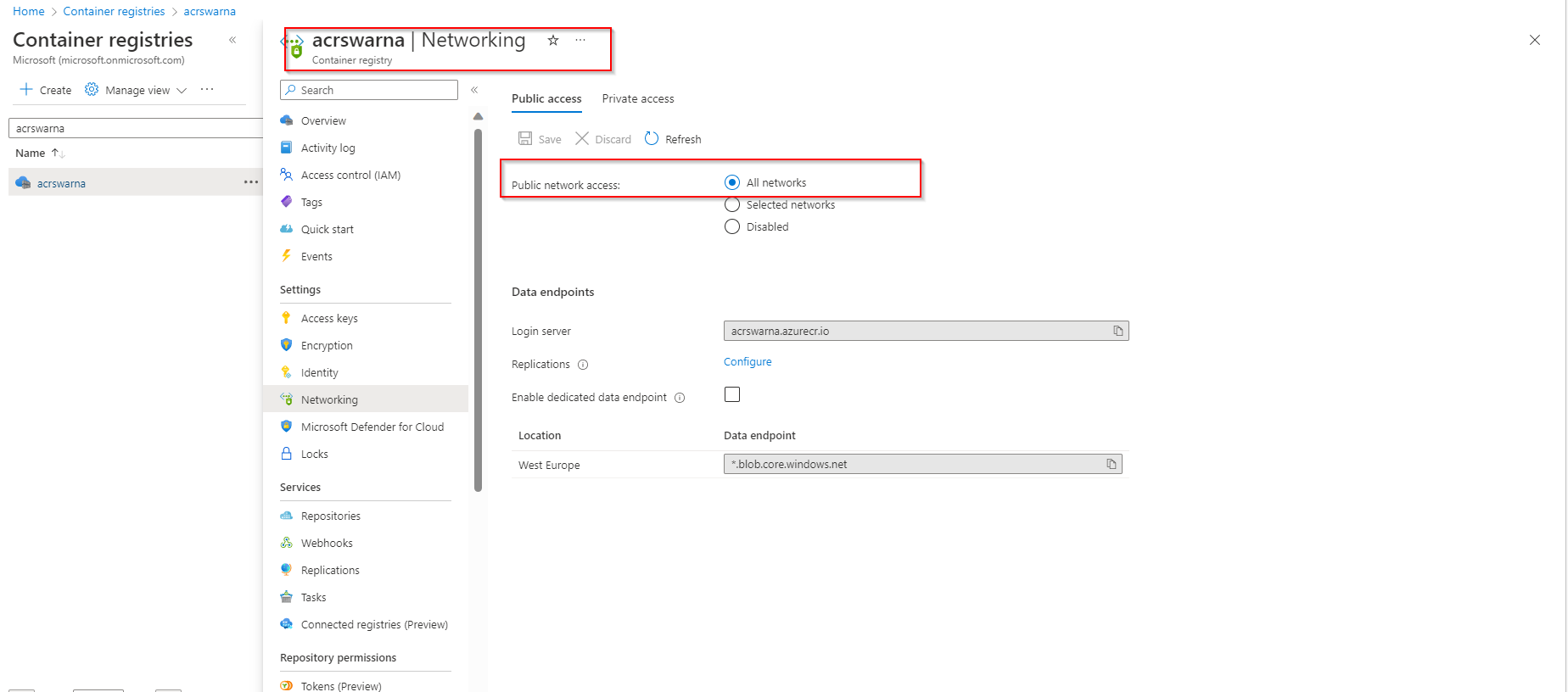 通过允许所有网络创建ACR