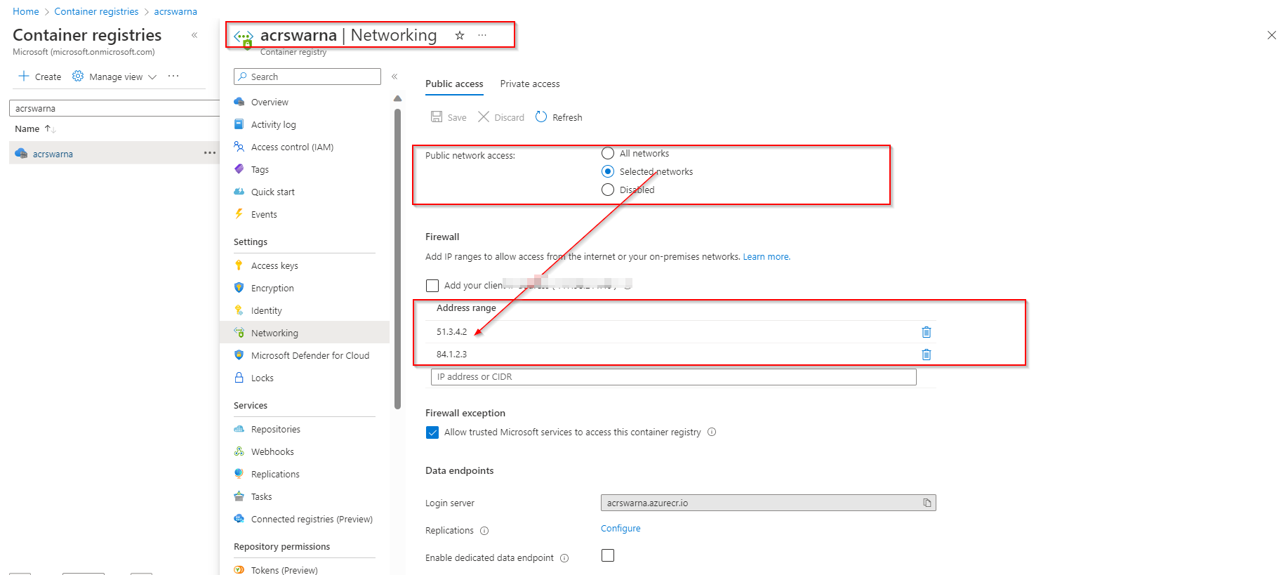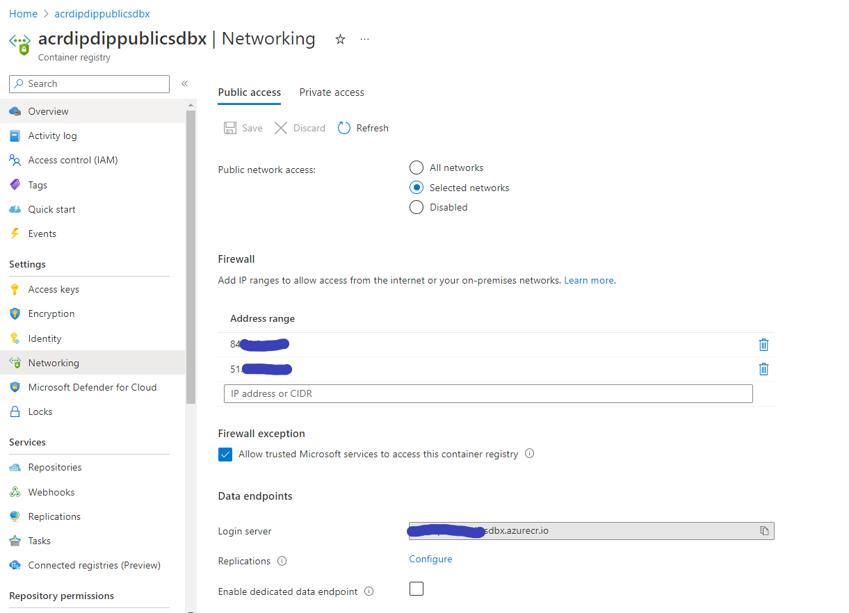 public_network_access_enabled = true这里有一个问题:尽管有一个严重的问题。如果我们有一个名单的it要白名单,它将工作。如果我们稍后决定从这个列表中删除IP或更改它们,但列表仍然不是空的,它将按预期工作。但是,如果您使用一个it列表(非空列表)启动ACR,然后决定像一样清空它。