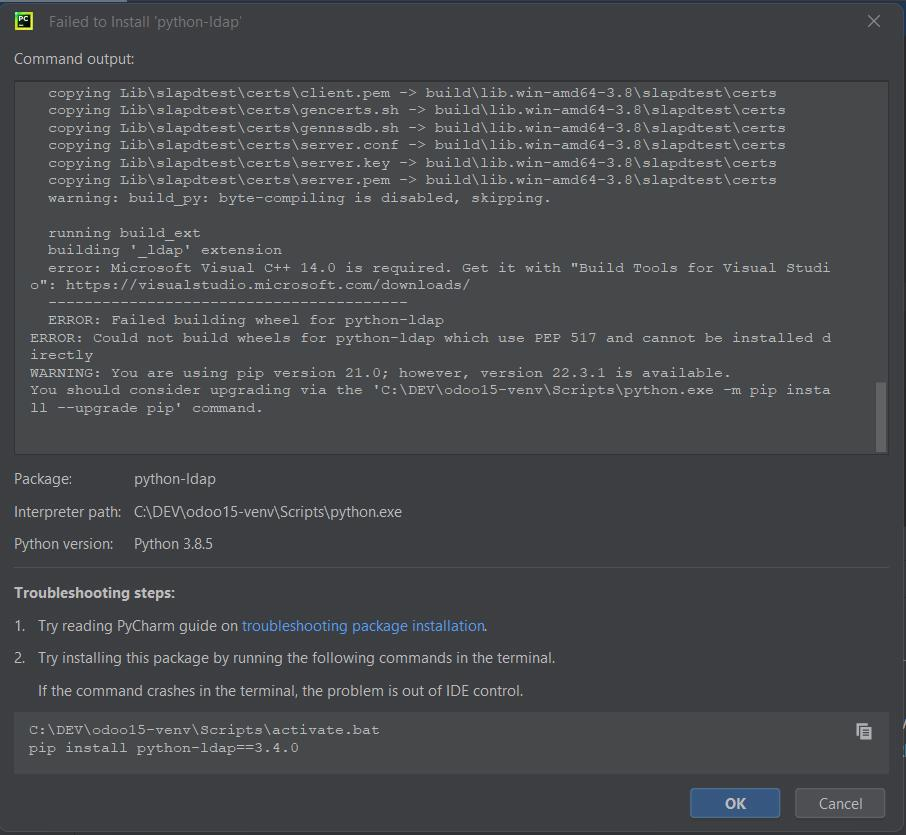 我尽力了,但是我无法在windows 11上安装ldap软件包