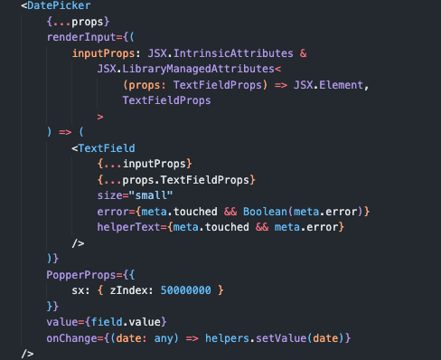 我有一个MUI DatePicker组件,它位于MUI抽屉组件中。当您单击日期选择器拉出日历弹出时,它将呈现在抽屉下面。
