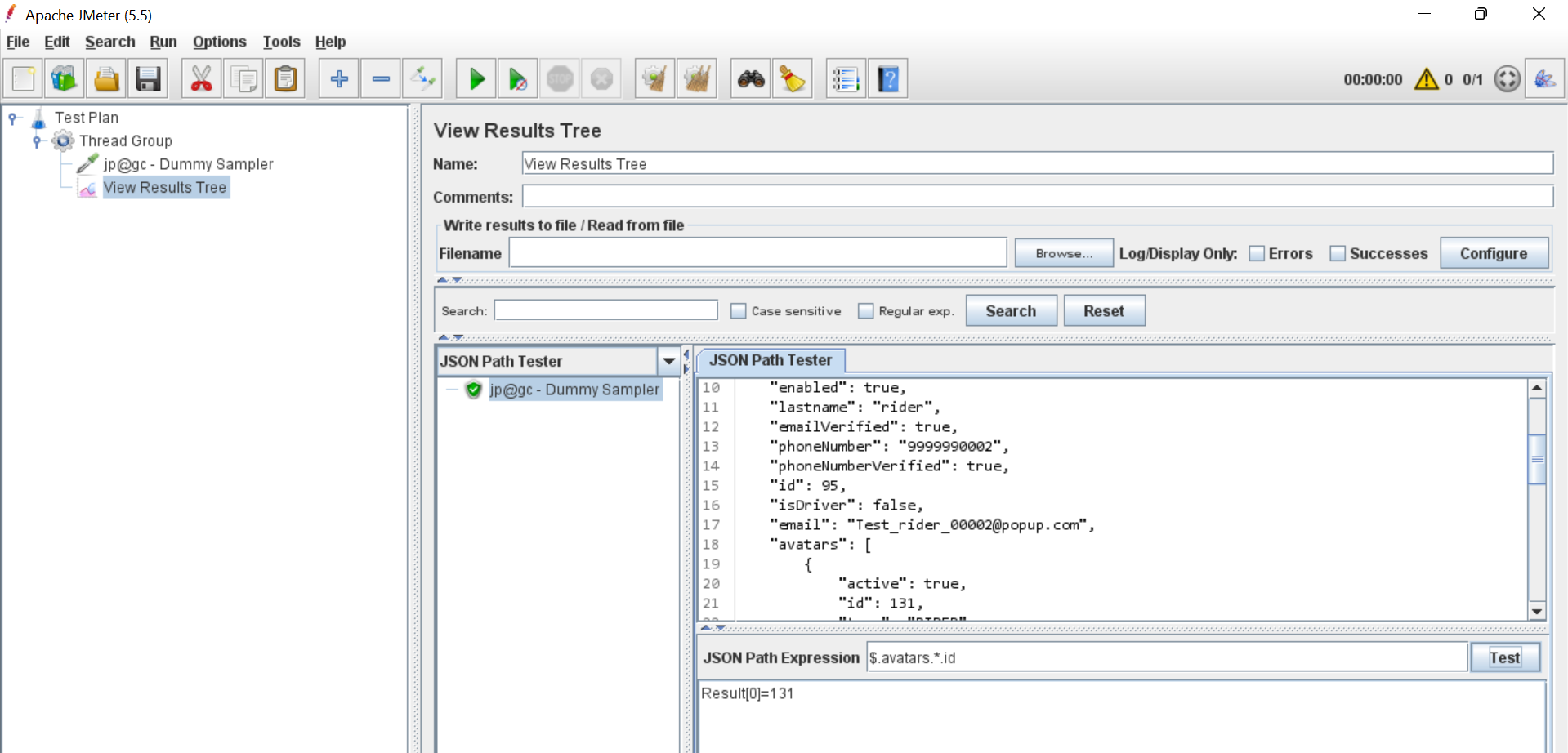 我试图从一个请求的响应中解析数组值,并将它传递给另一个request.From --一个api --我得到的响应为:{"id":95,“Test_rider_00002@popup.com”:“Test_rider_00002@popup.com”,“Test_rider_00002@popup.com”,“姓氏”:“rider”,"phoneNumber":"9999990002","phoneNumberVerified":true,"emailVerified":true,“address”:{“address”:“2400WideRD,Auburn,WA 98001,USA","zipCode":"98001"},"dateOfBirth":"2000-10-05“、”性别“:”未知“、”fullName“:”测试骑手“、”启用“:true、"isDriver":false、"avatars":{"id":131、"type":"RIDER”、"active":true}}