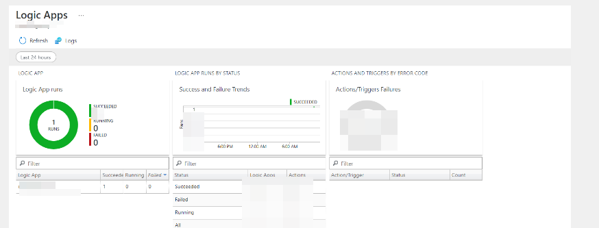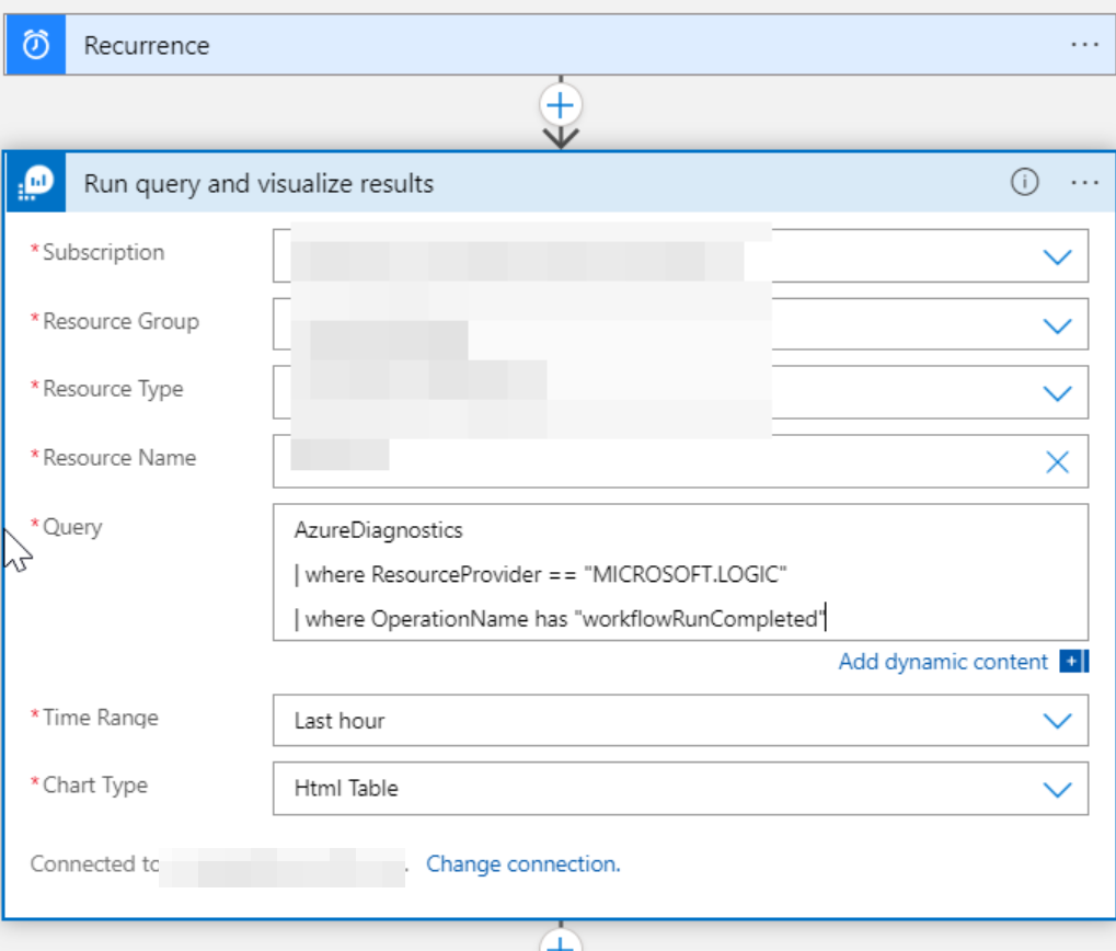 监视日志的另一种方式是使用下面的进程:首先,我将日志发送到Log analytics工作区,然后,我创建了另一个逻辑应用程序,并通过下面的进程获取日志: