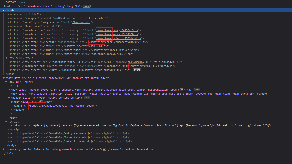 })默认情况下,buildAssetsDir的值是_nuxt,但您可以更改它。